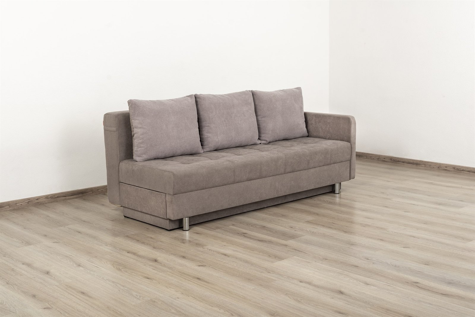 Benefit 89 — прямий диван, який поєднує комфорт, функціональність і акуратний сучасний вигляд. Наповнення: пружинний блок Боннель – пінополіуретан взаємозамінний. Базове виконання у тканині: Alaska 04 (Exim) + Doris 15 (Exim).. Механізм: Єврокнижка. Спальне місце: 1.91х1.43. Габаритний розмір: 1.99х0.88х0.89.